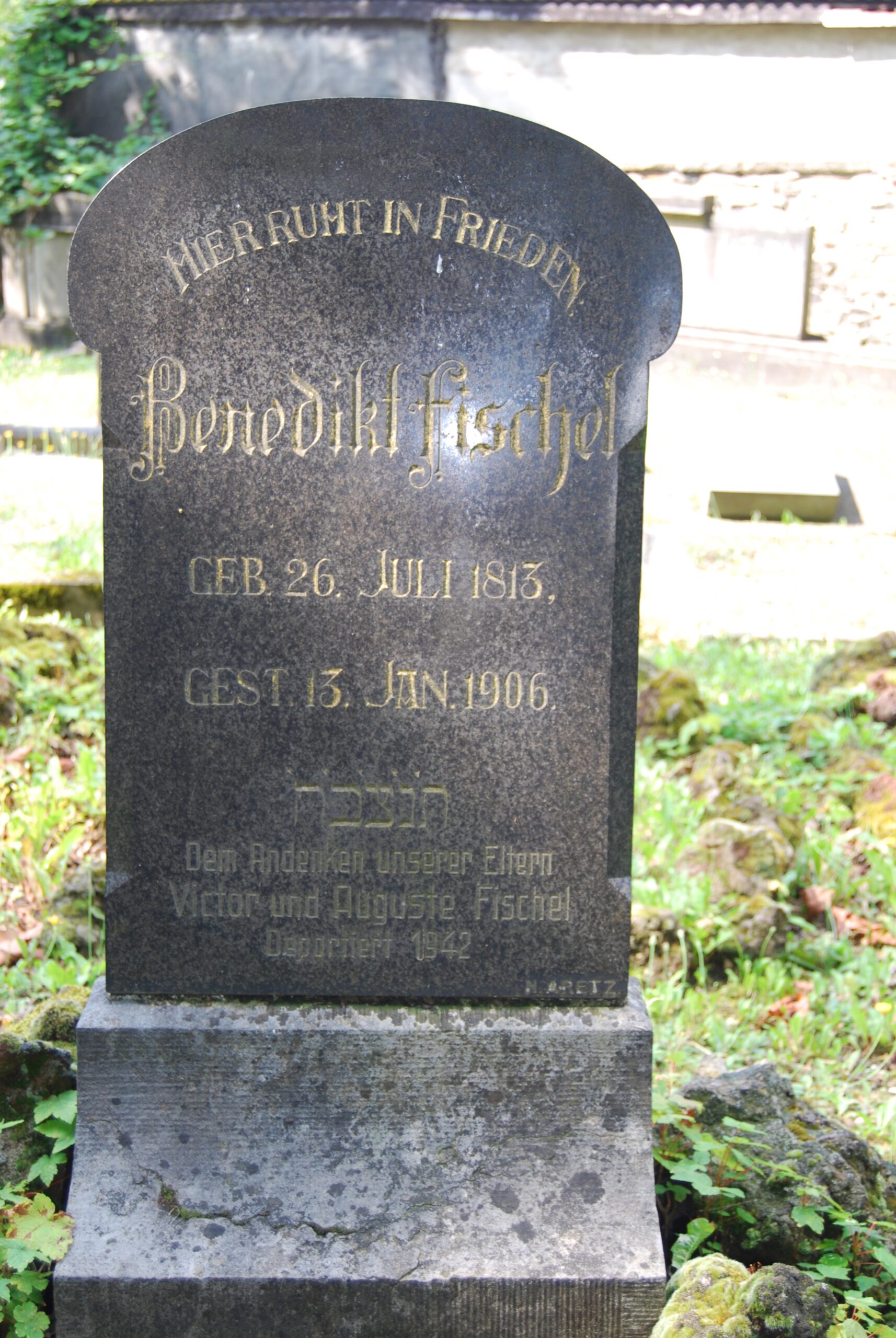 Gedenkstein für Victor und Auguste Fischel auf dem jüdischen Friedhof am Weinberg