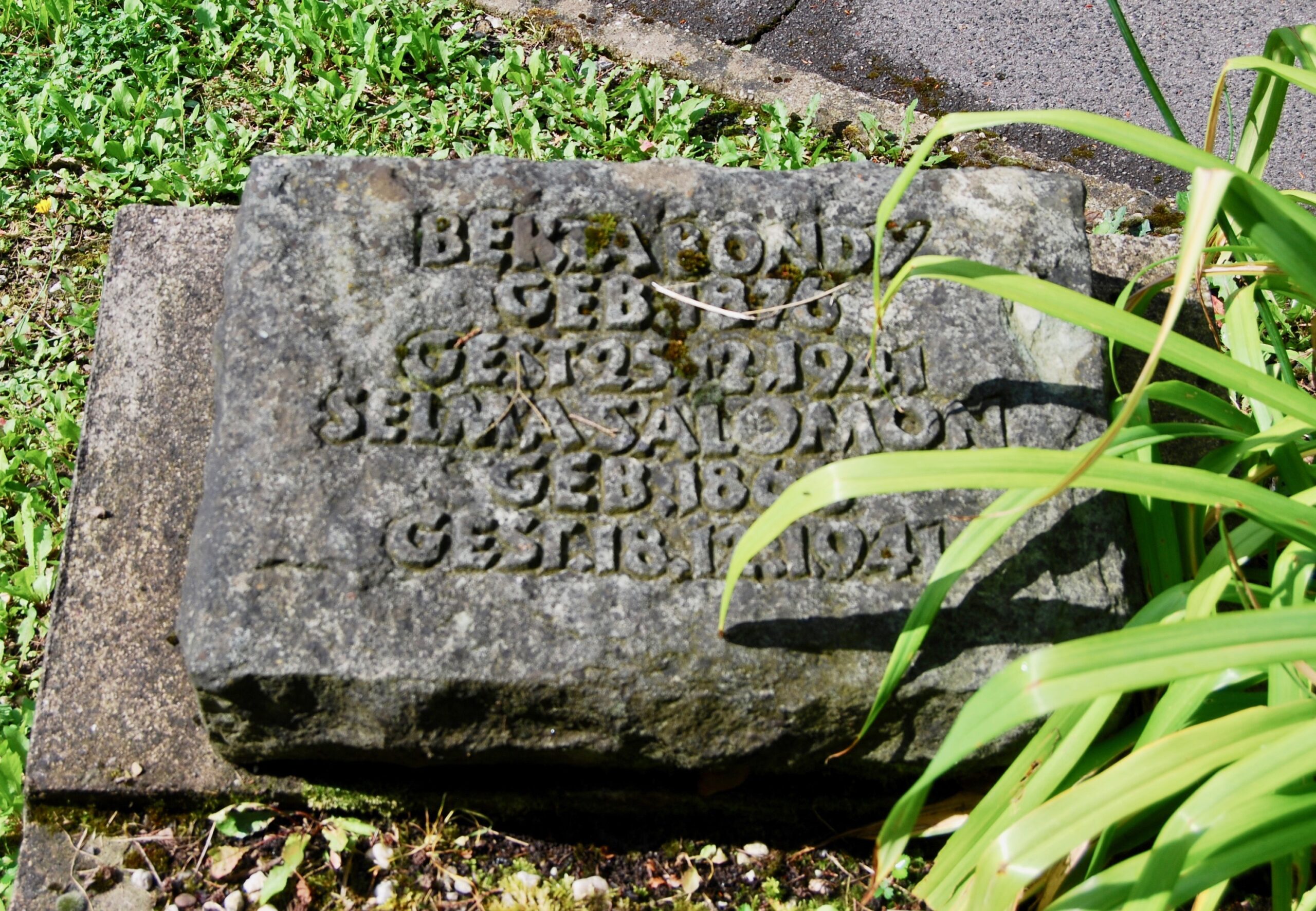 Bertha Bondys Grabstein befindet sich auf dem jüdischen Friedhof Weinberg ganz in der Nähe von dem ihrer Schwester auf Feld A, Reihe VII.