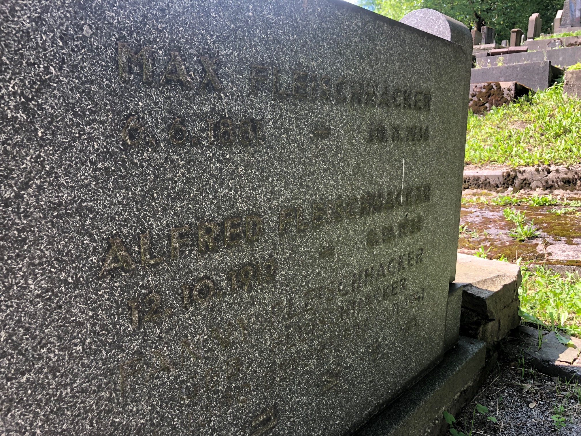 Grabstein von Alfred Fleischhacker auf dem jüdischen Friedhof am Weinberg