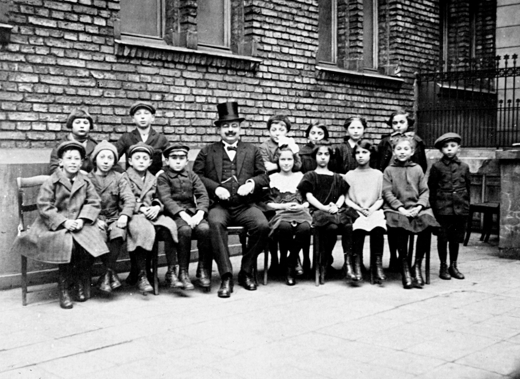 Gustav Sussmann mit seinen Religionsschülern im Hof der Elberfelder Synagoge