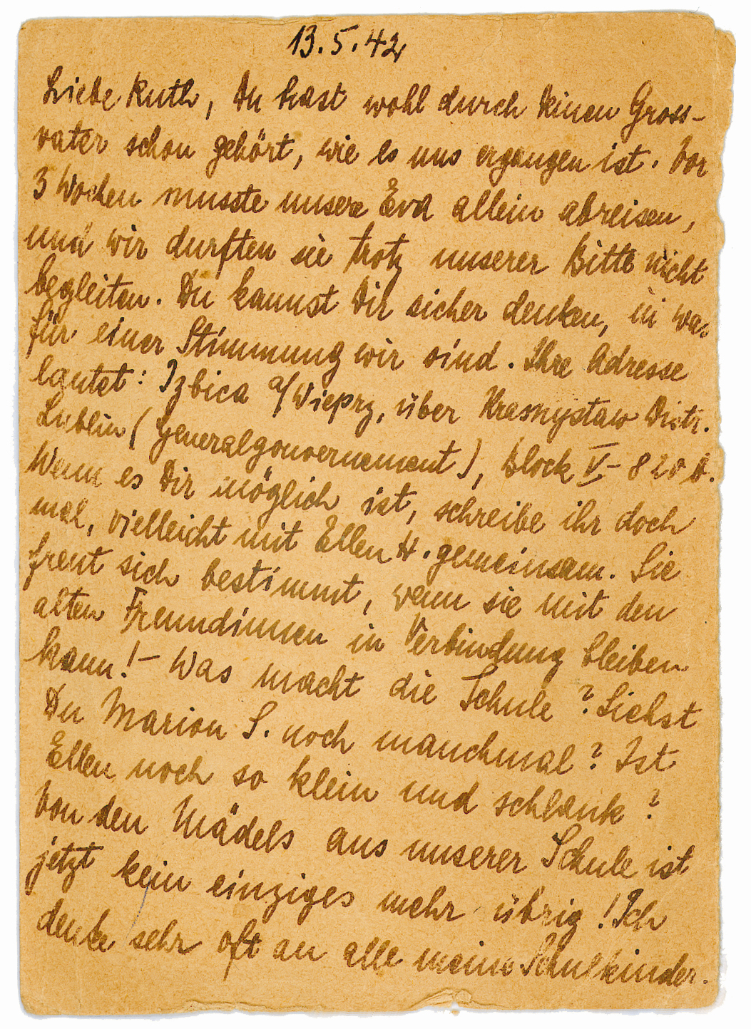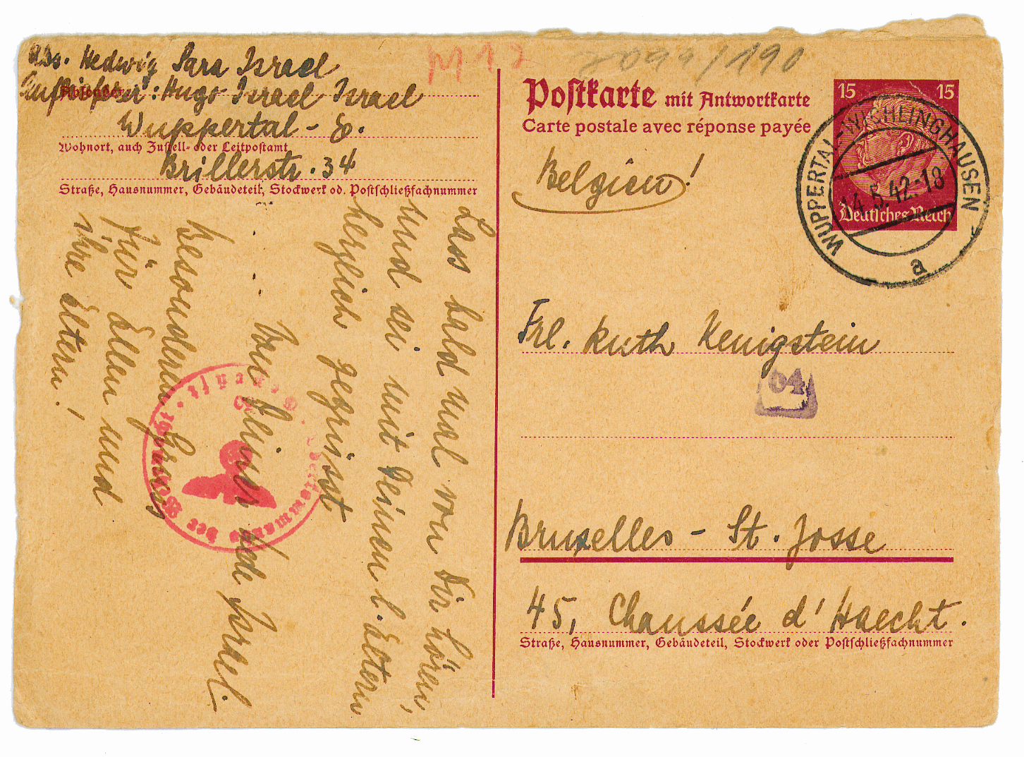 Postkarte von Hedwig Israel an Ruth Kenigstein, Mai 1942 (Vordersei-te)