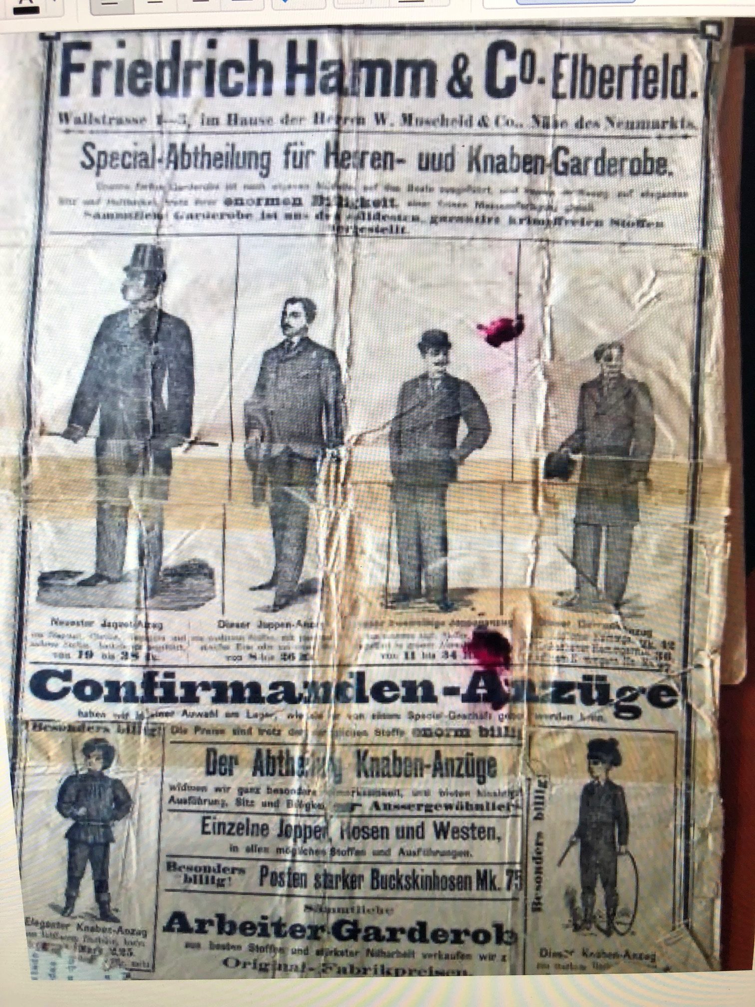 Geschäftsanzeige des Modegeschäfts Hamm, Wall 34